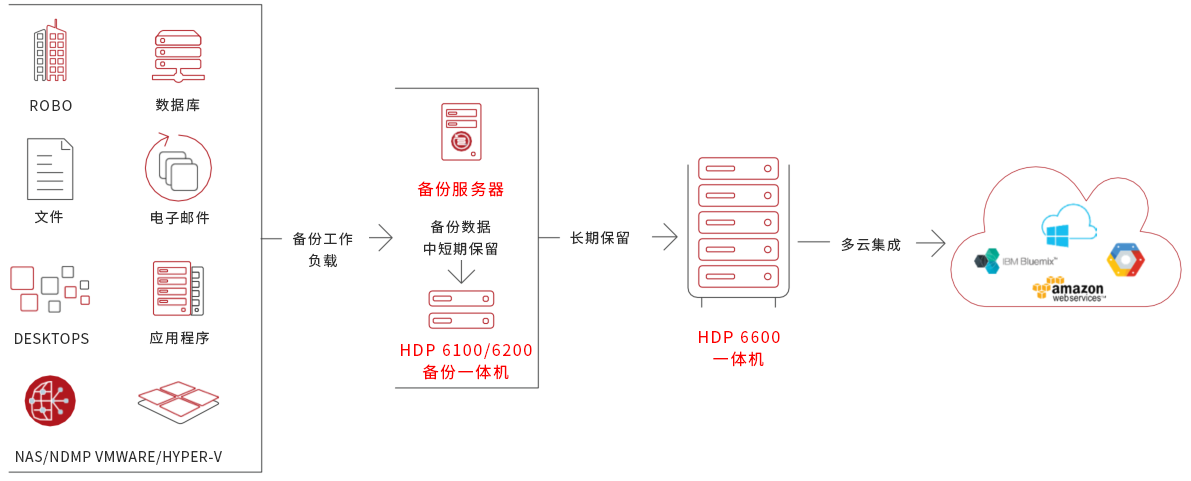 • HDP备份软件高度集成:给予一致的端到端长期数据保留和保护,并具有分类和备份功能